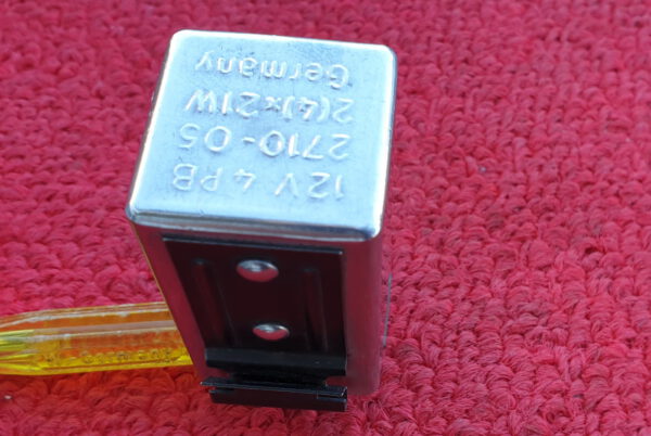 Auf dem Relais steht: Hella 12V 4PB 2710-05 2(4) x21W Germany, 3-polig