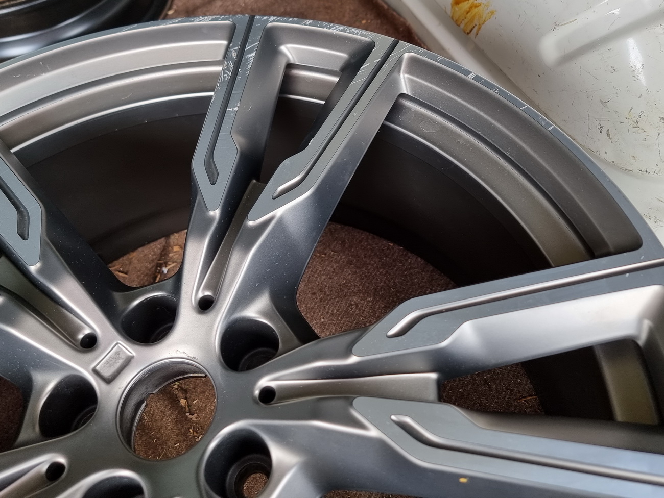 Felge mit Beschädigung, nicht am Lack, nur die polierte Flächen. Rundlauf ist getestet und gut. Ein WhatsApp Video des Rundlaufs ist verfügbar. Neupreis der Felge liegt bei ca 1350 €.