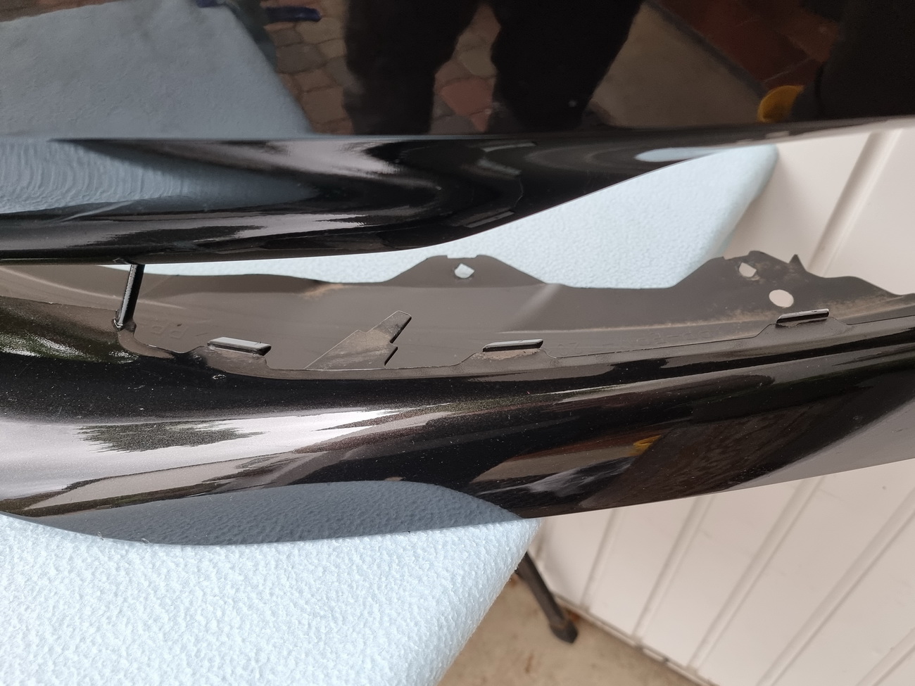 Gebrauchte Stoßstange vorne mit wirklich kleinster Beschädigung. Stammt von einem Elektro-Leaf mit Farbcode Z11. Es gibt nur einen Lackschaden vorne links beim Deckel für den Abschlepphaken, siehe Fotos. Halter / Lasche sind alle gut.