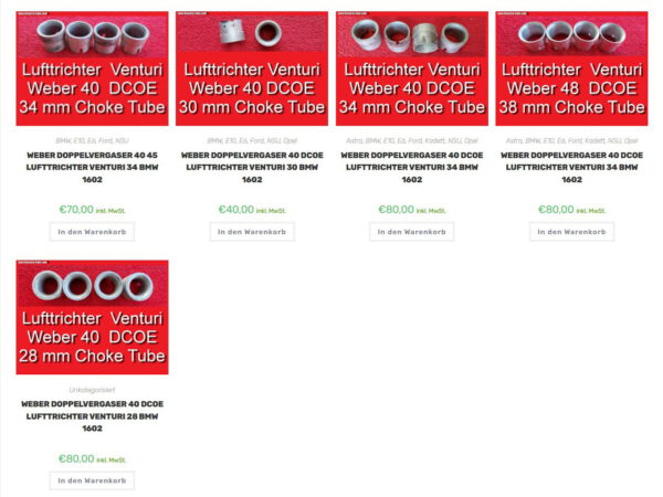 Weber Doppelvergaser 40 DCOE Lufttrichter Venturi 34 BMW 1602